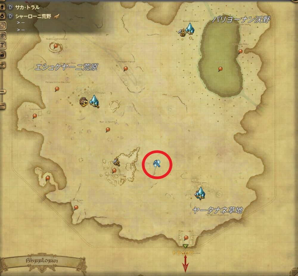 | 0:00/12:00 | 採掘 | ローズガーネット原石 | シャーローニ荒野(x24,y28) | フーサタイ宿場町 | ||