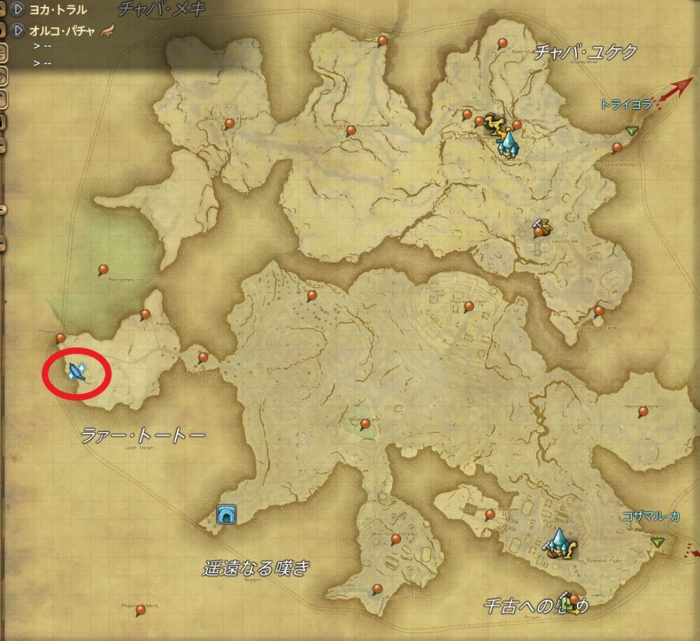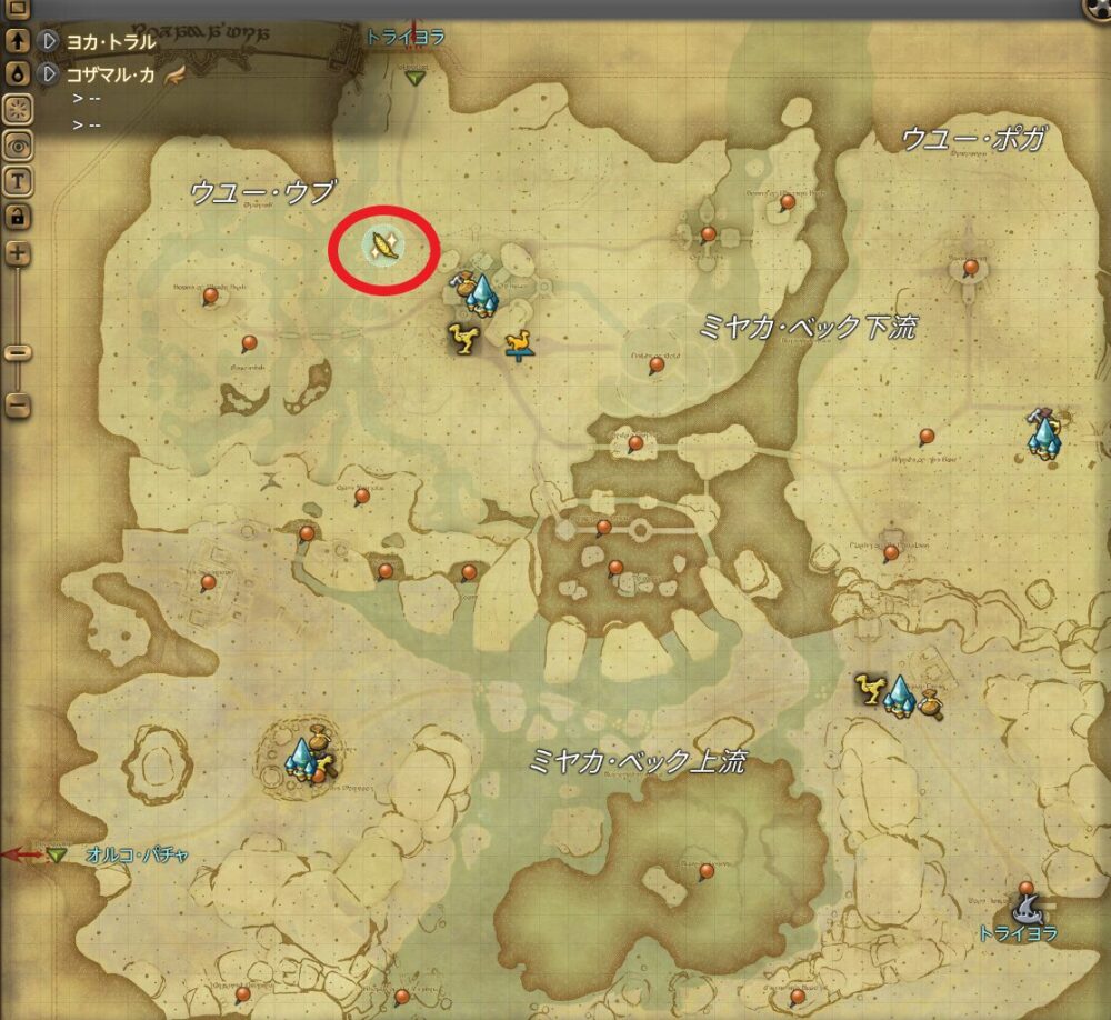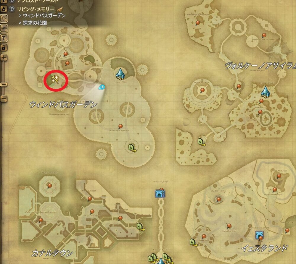 | 時間 | クラス | アイテム名 | 採取地(座標) | 最寄りエーテライト | ||