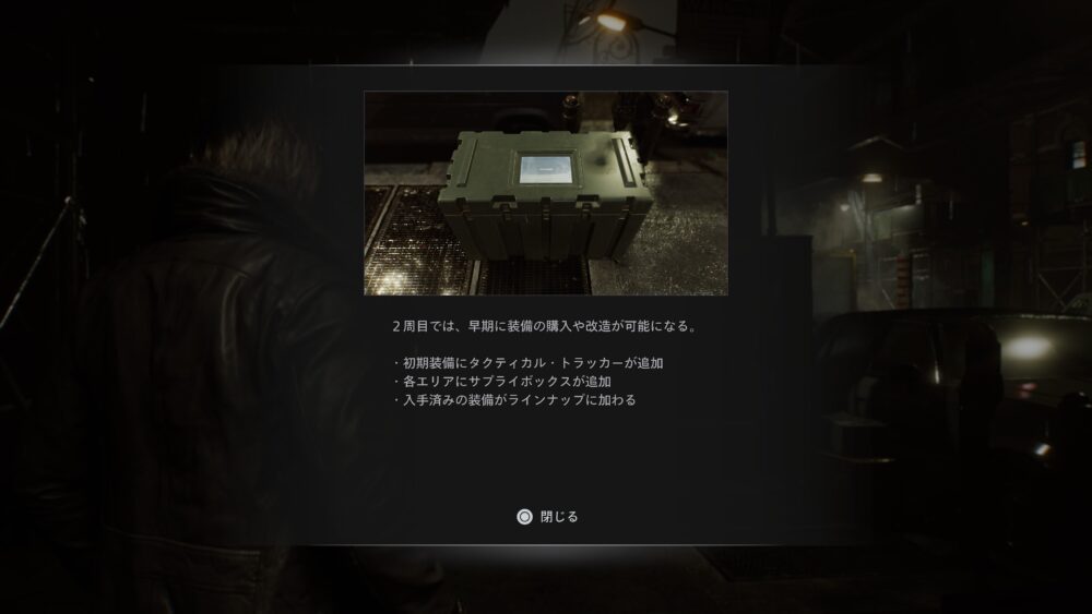 また2週目以降、レオン編についてはサプライボックスがスタート地点や診療所等に追加で配置され、最序盤から装備・アイテムの購入や強化等ができるようになります。